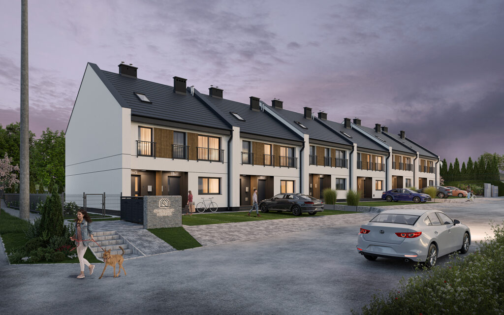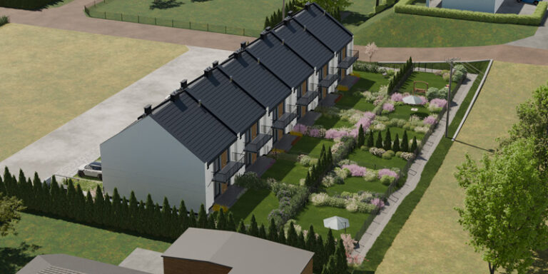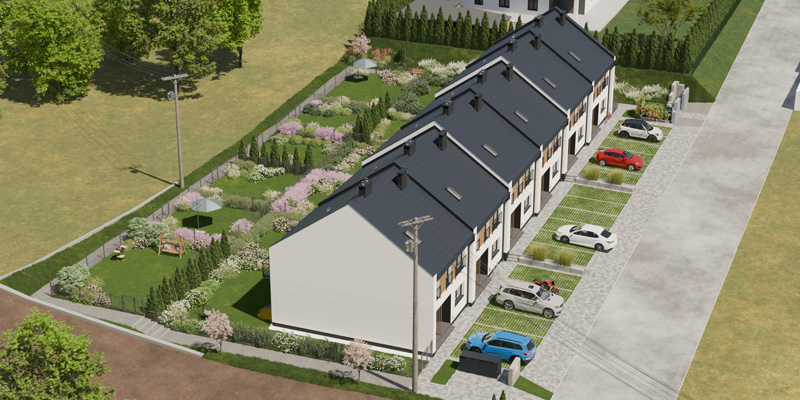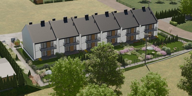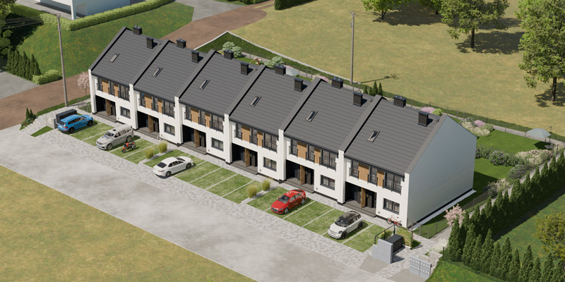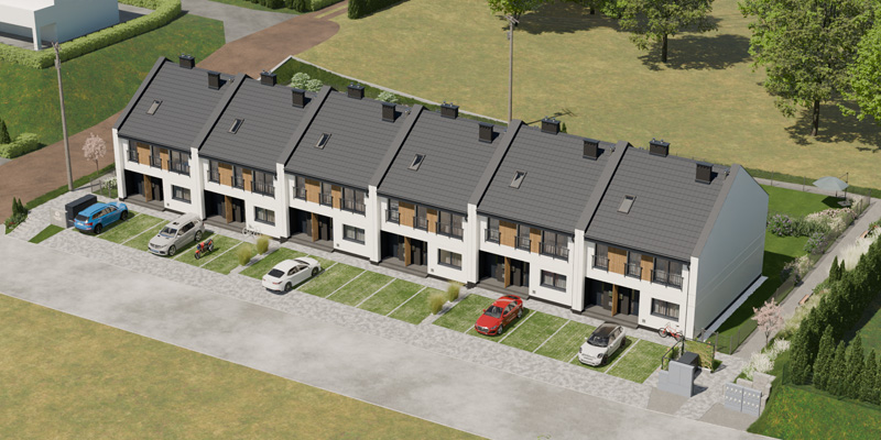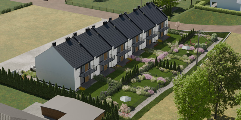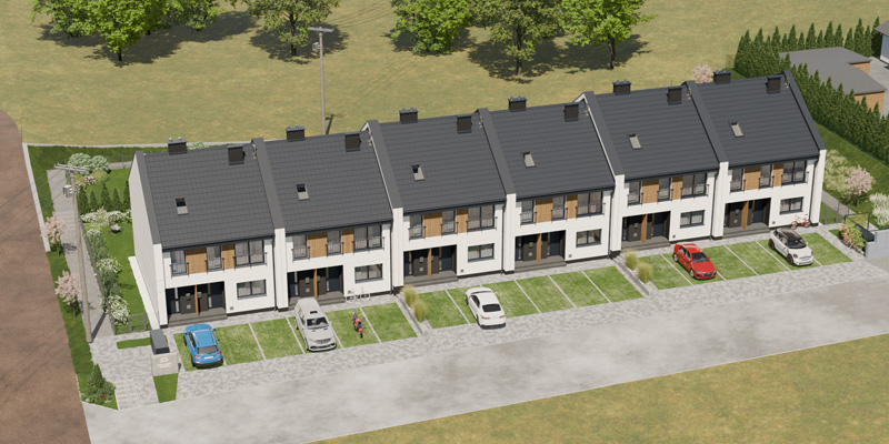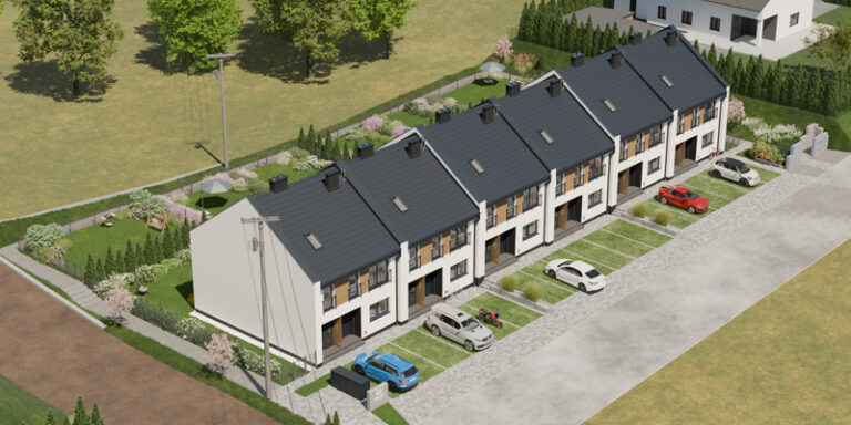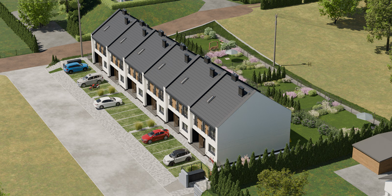 Apartamenty Wiśniowa to inwestycja zaprojektowana z myślą o osobach, które cenią kameralny charakter zabudowy, wygodę i estetykę. W sześciu dwulokalowych segmentach powstanie w dwóch etapach łącznie 12 przestronnych mieszkań, które idealnie wpisują się w otoczenie prestiżowej dzielnicy Barlinka. Prosta, elegancka architektura z dwuspadowymi dachami i estetycznie zaprojektowanymi elewacjami, solidne materiały, przemyślane rozwiązania techniczne i funkcjonalne oraz starannie zagospodarowany teren inwestycji tworzą komfortowe miejsce do życia.