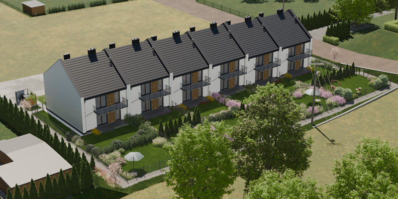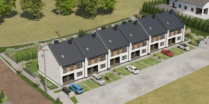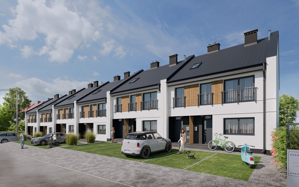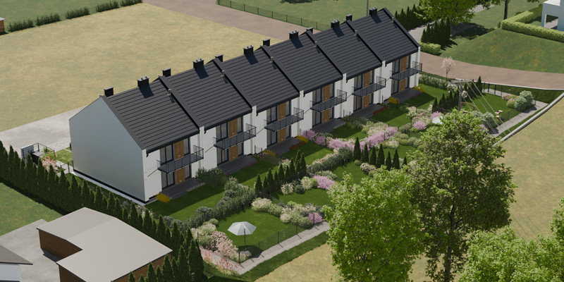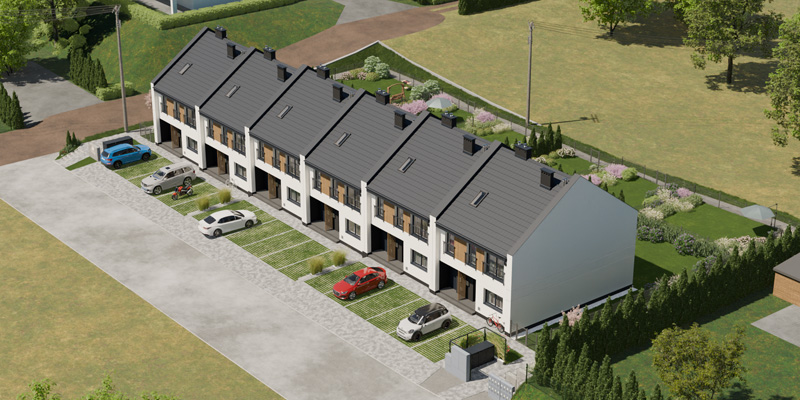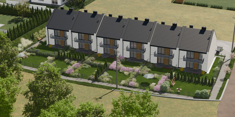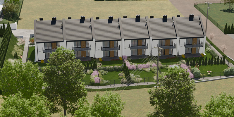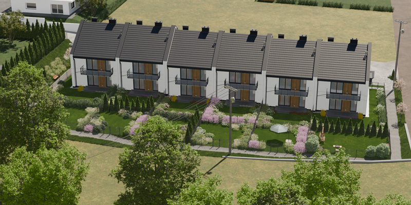 Apartamenty Wiśniowa to inwestycja zaprojektowana z myślą o osobach, które cenią kameralny charakter zabudowy, wygodę i estetykę. W sześciu dwulokalowych segmentach powstanie w dwóch etapach łącznie 12 przestronnych mieszkań, które idealnie wpisują się w otoczenie prestiżowej dzielnicy Barlinka. Prosta, elegancka architektura z dwuspadowymi dachami i estetycznie zaprojektowanymi elewacjami, solidne materiały, przemyślane rozwiązania techniczne i funkcjonalne oraz starannie zagospodarowany teren inwestycji tworzą komfortowe miejsce do życia.