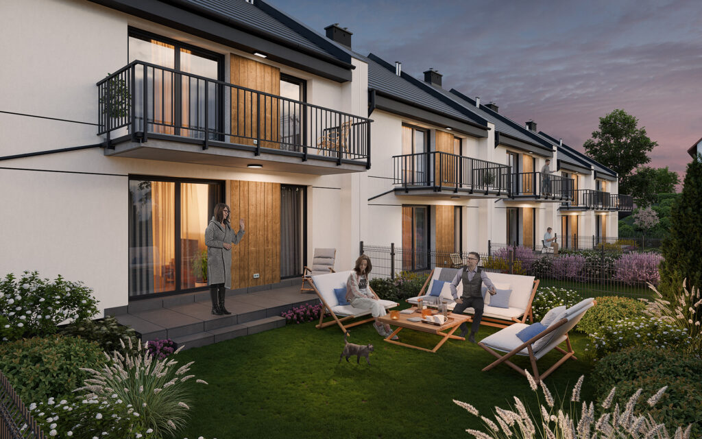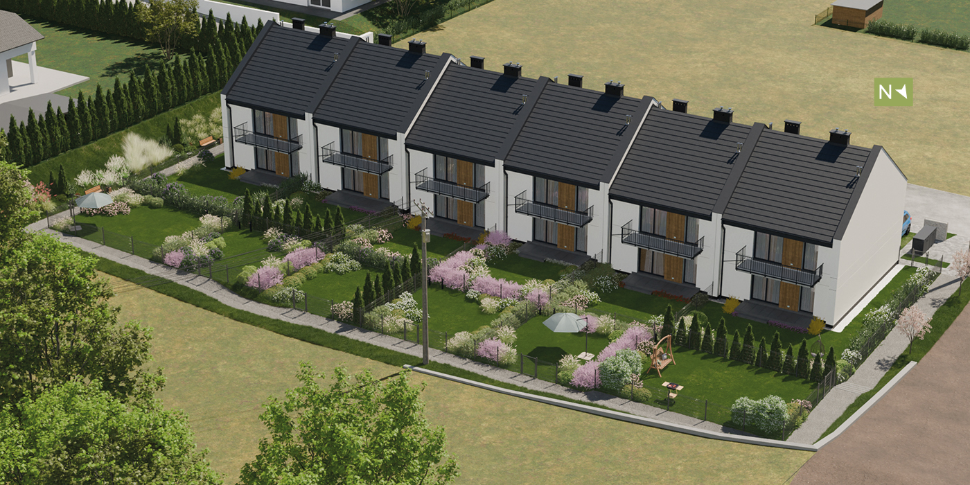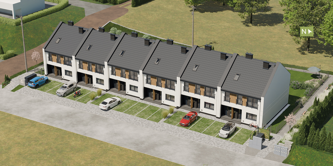 Każdy apartament w inwestycji posiada własny, ogrodzony ogródek – idealny na relaks na świeżym powietrzu. Mieszkania na piętrze mają dodatkowo przestronne balkony, a na parterze tarasy. Salony i tarasy mają ekspozycję północno wschodnią, dzięki czemu nie przegrzewają się latem – nie trzeba budować dodatkowego zadaszenia, czy też montować klimatyzacji. Ponadto do każdego apartamentu przynależy prywatne, utwardzone miejsce parkingowe, znajdujące się tuż przed wejściem. Jeśli potrzebujesz więcej przestrzeni postojowej, istnieje możliwość zakupu dodatkowych miejsc parkingowych.