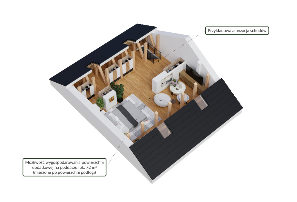 Poddasze nieużytkowe umożliwiające aranżację dodatkowej przestrzeni